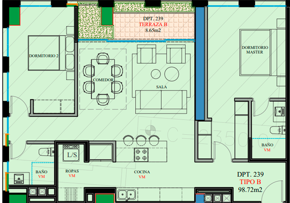 Área: 69.76 m²