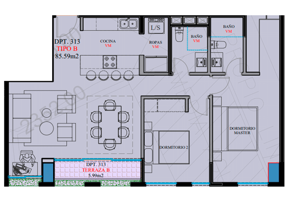 Área: 85.59 m²