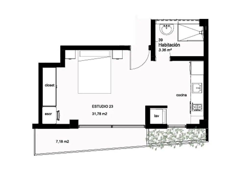 Área: 38.96 m²