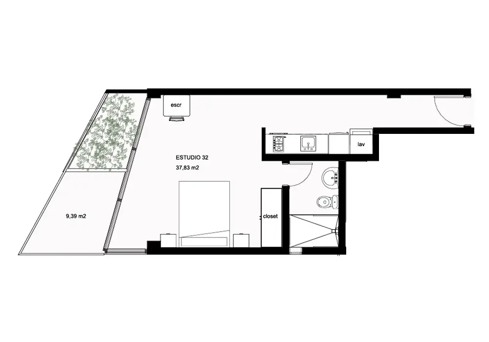 Área del balcón: 9.39